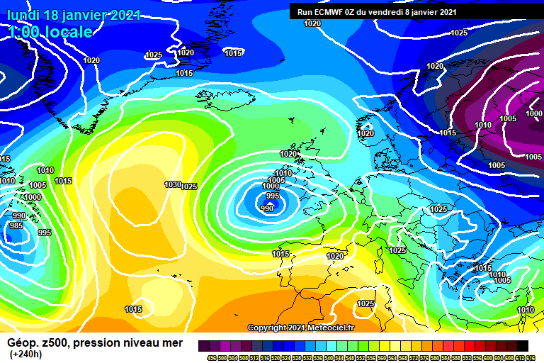 Wat ec nu voorsteld is dat rond de 15e een zwak hoog onstaat, aangezien koude boveluchten prachtisch al voor de grens van Nederland ligt is is er nog maar een klein zetje (het hoog) voor nodig om -10 a -12 bovenluchten bij nederland te krijgen. We zien dat daarna een laagje onderweg is om een "dooiaanval" te brengen. Maar mocht ie inderdaad zo'n zuidelijk koers nemen dan zou de kou wel eens in Nederland kunnen blijven en er juist sneeuw gebracht kunnen worden. Op de oceaan vormt zich tegelijkertijd een nieuwe rug, het zo mooi zijn als die daar met een beetje hulp van de ssw stand houdt en er voor zorgt dat het weer voor lange tijd geblokkeerd blijft, een mooie setup dus maar we hebben het hier over details op 240h. Dus bij de volgende run zal het wel weer heel anders in elkaar steken.